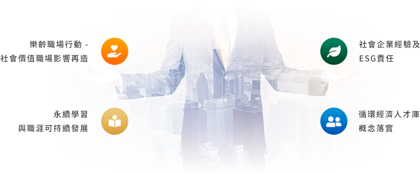 我們的理念與聯合國永續發展目標(SDGs)中的SDG8高度契合,積極促進包容且永續的經濟成長積極促進包容且永續的經濟成長,為每個人創造一份適合的好工作。透過多元用工模式與靈活的職涯解決方案,我們讓中高齡勞工在職場上再次展翅高飛,成就雙贏!